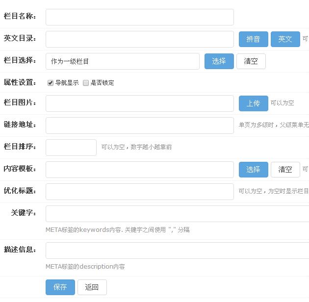 彈出對話框后,我們只需要設置【欄目名稱】然后點擊保存