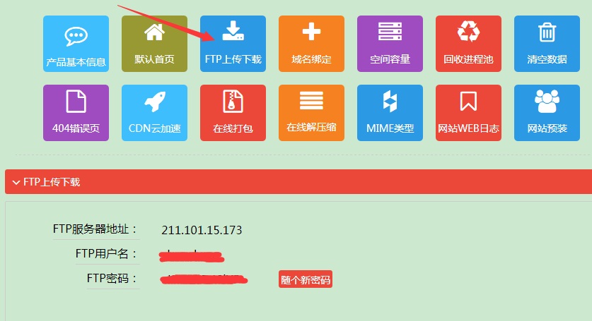 進入主機控制面板后,如果需要查看對應主機的FTP信息,點FTP帳號管理: