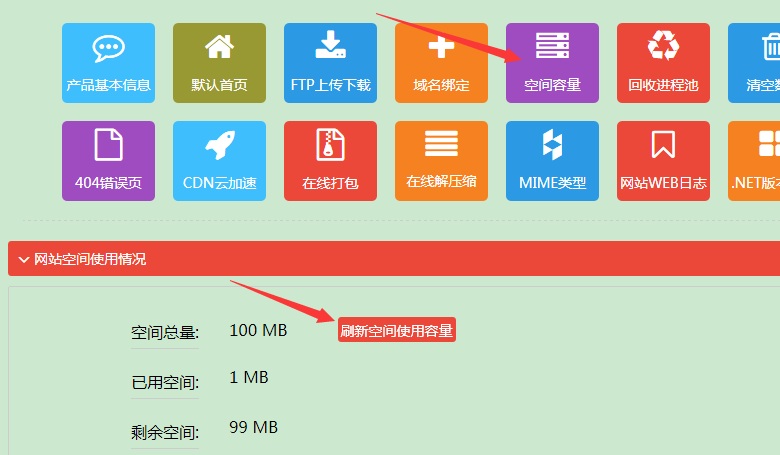 上傳程序后,想要查看空間已使用了多少容量,點擊“空間容量查看”功能進行刷新即可。